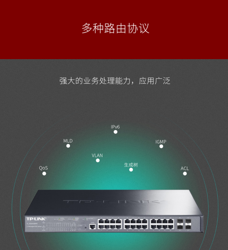 以太網(wǎng)交換機(jī)普聯(lián)/TP-LINK24口全千兆4個(gè)SFP光纖口企業(yè)網(wǎng)絡(luò)匯聚三層網(wǎng)管POE交換機(jī)TL-SG5428PE/臺