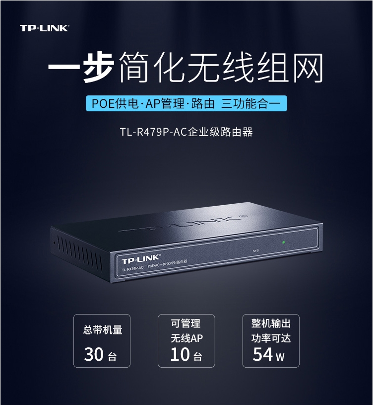 路由器普聯(lián)/TP-LINK企業(yè)級VPN路由器 8口PoE供電/AP管理 PoE供電TL-R479P-AC/臺