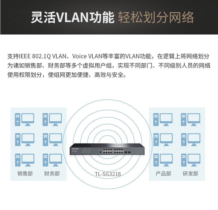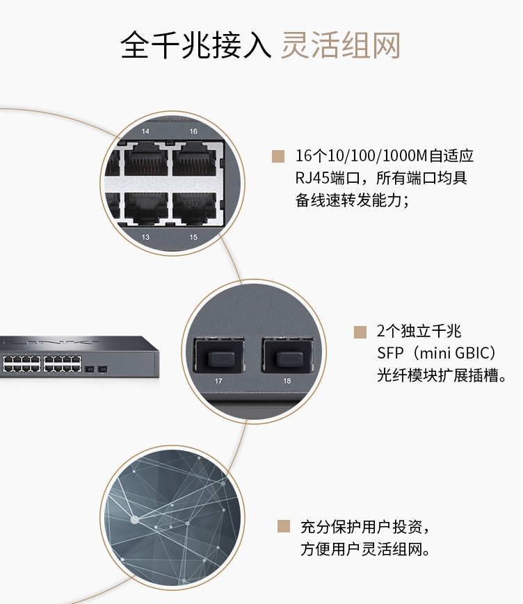 以太網(wǎng)交換機(jī)普聯(lián)/TP-LINK16口千兆二層匯聚交換機(jī)帶2光口可網(wǎng)管VLAN企業(yè)級(jí)TL-SG3218/臺(tái)