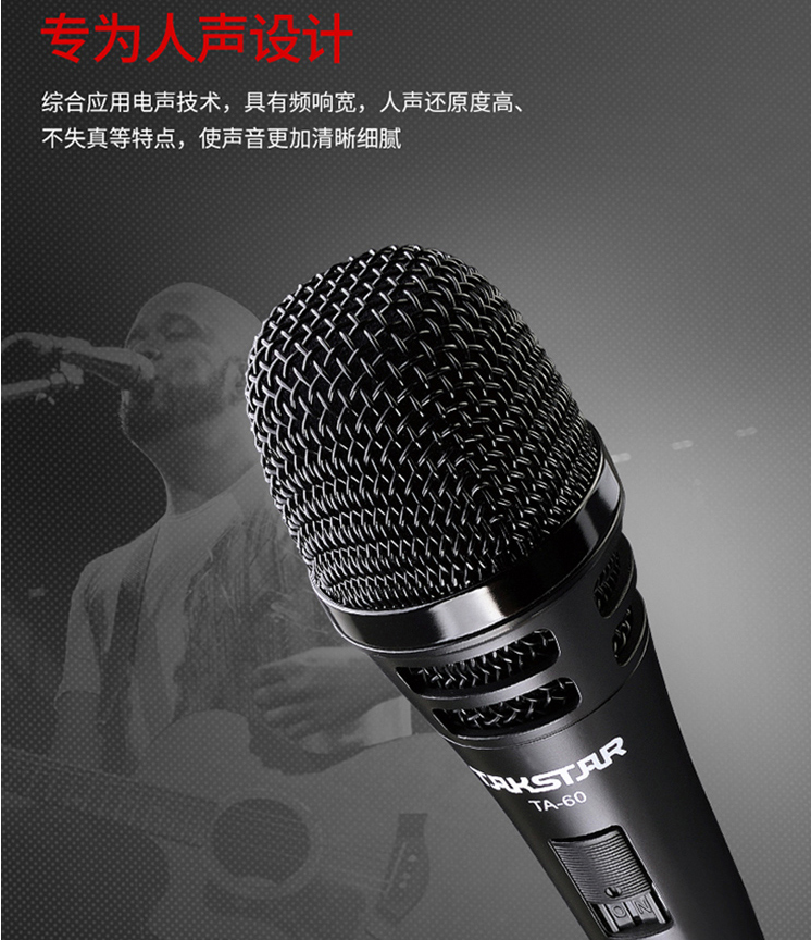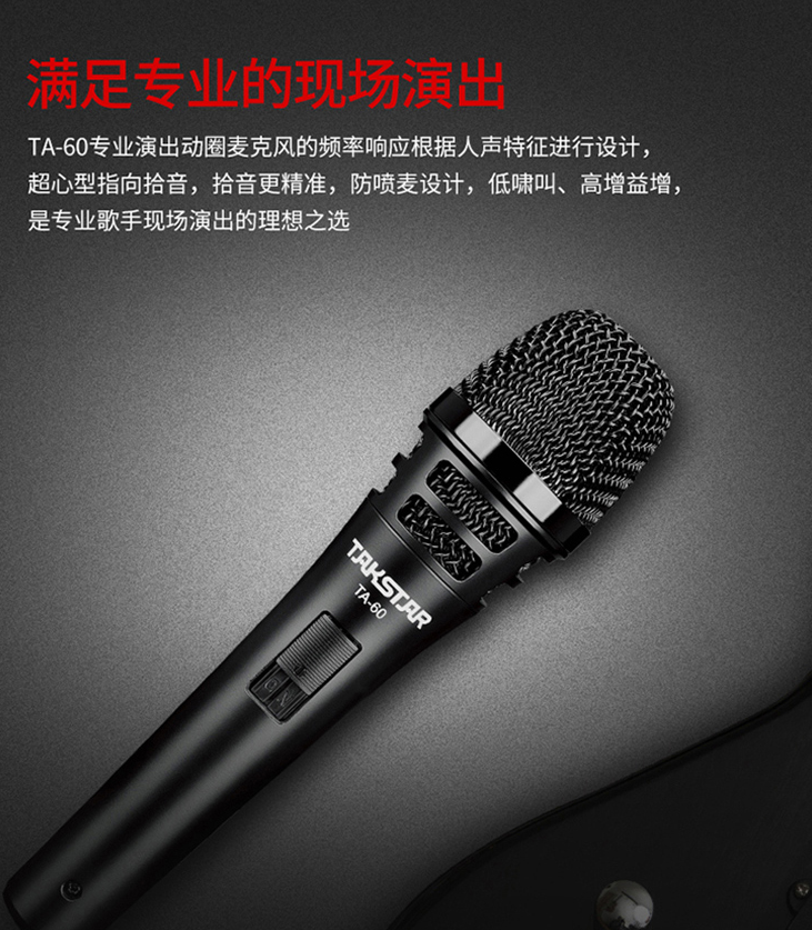得勝/TAKSTAR有線動圈麥克風(fēng) 專業(yè)演出唱歌話筒黑色TA-60/臺